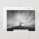 Photo postcard of a small church or chapel on a hill under motion-blurred clouds in the sky in Leidschenveen, The Hague, The Netherlands in black and white with a white edge and the text 'Leidschenveen'.