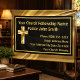 A classy touch of gold and black Your Church Fellowship Name banners for Pastor, Priest, Deacon, and other Clergy. It is designed with an elegant gold metallic pattern and a modern black border. #Christian #Catholic