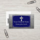 Church Pastor Silver Blue Cross Elegant Border Business Card