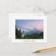 Photo postcard with colourful clouds in the sky during sunset over the Maria Gern church with a view towards big Watzmann mountain in the German Alps near the border with Austria in Berchtesgaden in Bavaria, Germany with a white border and the text 'Germany'.