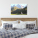 Canvas landscape print of the church of San Giovanni in Ranui (Sankt Johann) in front of the Geisler or Odle dolomites mountain peaks in Santa Maddalena (Sankt Magdalena) in the Val di Funes in Italy.