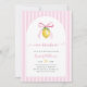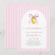 A charming Italian-inspired baby shower invitation featuring soft pink stripes, a delicate bow-tied lemon, and romantic script typography.