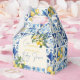 Create an unforgettable baby shower table with this elegant Mediterranean lemon gable favor box. Inspired by Italian Amalfi Coast tiles, this design features hand-painted blue and white patterns, fresh citrus lemons, and soft European charm.