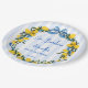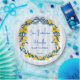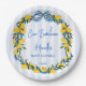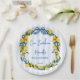 Ciao Bambino Lemons blue bow ribbon Italian baby shower monogrammed paper plates, citrus lemons blue and yellow baby shower personalised printed paper plates; Italian baby shower personalised table decor