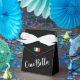 Embrace the essence of femininity with our charming black favour box, adorned with a satin bow. This box is not just a token of appreciation; it's a celebration of the feminine spirit. The front closure delicately features a petite Italian flag, while the front of the box boasts an elegant white script that says 'Ciao Bella.'