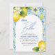 Celebrate your special day with a charming Italian flair using the "Ciao Bella" Italian Lemon Blue Tile Bridal Shower Invitation. Featuring vibrant yellow lemons and intricate blue tile patterns, this design captures the essence of the Mediterranean. Perfect for a bride-to-be with a love for all things Italian, this elegant invitation sets the tone for a festive, stylish event. Whether you’re hosting in a cosy garden or a grand venue, this invitation is sure to impress your guests with its bright and cheerful vibe.