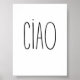 Ciao, hello in Italian. Typography in black and (transparent) white. You can change the background color.