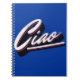 Simple retro style "Ciao" text design with colourful grunge letters and underline