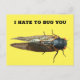 This postcard is ready to be customised with your own fun headline on the front in bold black lettering. It features a photo of a cicada set against a bright yellow background.