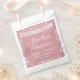 Elegant Blush Pink baby shower favour bag featuring delicate white papel picado artwork and the phrase “Muchas Gracias” in flowing script. Personalised with the parents’ names and event date, this soft Mexican-inspired design adds a beautiful cultural touch to your Cielito Lindo baby shower celebration.