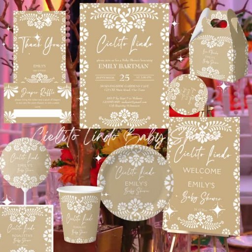Cielito Lindo beige Mexican fiesta baby showerDesigned by Ieva Jenciute