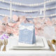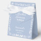Charming dusty blue baby shower favor box featuring elegant white papel picado details and the phrase “Muchas Gracias” in graceful script. Personalized with the baby’s name and event date, this keepsake-style gift box adds a meaningful bilingual touch to your Cielito Lindo or Mexican-inspired baby shower celebration.