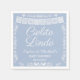 Elegant dusty blue baby shower napkins featuring a delicate white papel picado banner and ornamental floral border. Personalized with names and event date, these napkins are perfect for a Cielito Lindo or Mexican-inspired baby shower theme.