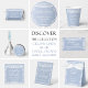 The soft blue background paired with intricate white lace-style details creates a refined yet festive look. Ideal for dessert tables, drink stations, cake tables, or place settings.