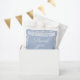 Soft dusty blue baby shower favor bags featuring an elegant white papel picado banner and delicate ornamental border. Personalized with names and event date, this treat bag is perfect for a Cielito Lindo–inspired celebration or classic blue baby shower theme.