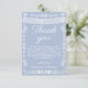 This elegant Cielito Lindo baby shower thank you card features delicate white papel picado banner details and ornate floral borders on a soft dusty blue background. The graceful script headline paired with a heartfelt appreciation message makes it a beautiful way to thank guests for celebrating your baby shower.