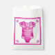 Cielito Lindo hot pink baby bodysuit girl baby shower Thank You favour bags. Elevate your celebration with these beautifully designed thank you bags, inspired by the colourful heritage of Mexican Talavera folk art. Each bag showcases a delightful watercolor illustration of a hot pink baby bodysuit, complemented by delicate white floral accents that bring a playful yet elegant feel. The bright white background enhances the hot pink and detailed patterns, while the elegantly scalloped edges provide a refined finishing touch.