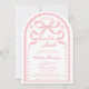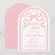 The arched silhouette is inspired by old-world Mexican architecture and vintage ceramic tile frames, while the scalloped border echoes the delicate cutout rhythm of papel picado banners. Soft blush pink tones give the design a gentle, feminine feel, while the symmetrical floral accents and ornamental details reflect the elegance of traditional Talavera tile patterns. At the top, the hand-drawn ribbon bow adds a graceful coquette touch that keeps the design sweet, romantic, and perfect for honoring a baby girl.