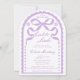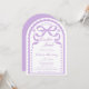 The arched silhouette is inspired by old-world Mexican architecture and vintage ceramic tile frames, while the scalloped border echoes the delicate cutout rhythm of papel picado banners. Soft lavender purple tones give the design a gentle, feminine feel, while the symmetrical floral accents and ornamental details reflect the elegance of traditional Talavera tile patterns. At the top, the hand-drawn ribbon bow adds a graceful coquette touch that keeps the design sweet, romantic, and perfect for honoring a baby girl.