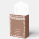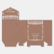 Elegant terracotta baby shower favour box with delicate white papel picado banner and ornamental lace-style frame. Personalised with the baby’s name and event date, this charming gift box adds a refined touch to your Cielito Lindo or classic baby shower celebration.