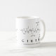 Cierra spelled out in amino acids as C I E R R A (Cysteine Isoleucine Glutamic acid Arginine Arginine Alanine) on a mug for the scientist in you.