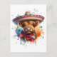 Cute Highland cow dressed up for Cinco de Mayo in a serape and sombrero.