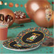 A cute kitty celebrating Cinco de Mayo day with maracas, and a sombrero with a text saying Cinco de Meowo. A perfect fiesta paper plate for the Cinco de Mayo fiesta.