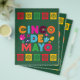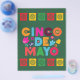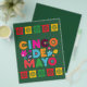 This festive flyer is a vibrant tribute to Cinco de Mayo, designed to capture the essence of the holiday's lively celebrations. It features a rich, deep green background that serves as a lush canvas for the colourful text and embellishments that make up its central design. The words "CINCO DE MAYO" are arranged in a playful, staggered layout, each letter rendered in a different bold colour that makes the title pop and invites viewers to read on.