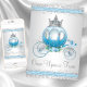 Cinderella birthday party invitation with beautiful, fancy silver and blue royal princess carriage and light blue and silver glitter background. This beautiful girls any number Cinderella once upon a time princess birthday party invitation is easily customised for your event by simply adding your details in the font style and colour, and wording of your choice. This is a printed design with no real glitter, diamonds, lace, etc.
