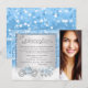 Cinderella Quinceanera invitation with beautiful silver and blue horse and carriage on a blue bokeh and diamond sparkle bokeh background. This beautiful fairy tale princess Quinceanera invitation is easily customised for your event by simply adding your photo and event details in the font style and wording of your choice. This is a printed design with no real diamonds, glitter, feathers, etc.