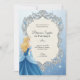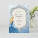 A Cinderella-themed birthday invitation with elegant silver borders. Features a princess in a blue gown, inviting guests to a fifth birthday party.