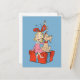 This absolutely darling illustration captures a moment of pure holiday joy! Cindy Lou Who, dressed sweetly in pink with her big red bow, is sitting happily atop a large, colorful Christmas present (red with a blue ribbon). Beside her sits her loyal friend, Max the Dog, looking cheerful and sporting his single reindeer antler! This heartwarming graphic perfectly celebrates friendship and the sweet excitement of Christmas morning.