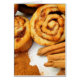 Powdered and stick cinnamon with freah baked mini cinnamon rolls on a white plate