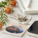 The five fishing villages that comprise the Cinque Terre (5 lands) are all contained within the UNESCO World Heritage Site of Cinque Terre National Park. In this image, a romantic view of the town of Manarola minutes after the sun set, with the lights of the colourful town beginning to flicker on and the waves crash against the shores of the Italian cliff. Though at one point, the primary industry was fishing, today it is tourism. This design makes a great souvenir for those who have already taken a trip to this jewel of Italy or those who are dreaming of their Italian trip. This keychain is fully customisable and ready to be personalised.