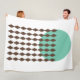 This large fleece blanket has a mid-century modern design with a sea-green circle with brown diamond chains.