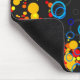 Fun and funky retro background design made up of blue ring shapes and orange, red and yellow spots. Image available on various gifts and products.