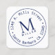 Modern circle design, personalised with your initial, name (or brand) and address... with phone and email at the blue back.
