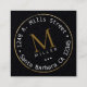 A modern circle design, personalised with your initial, name (or brand) and address... with phone and email at the back of the square black business card