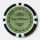 These poker chips have a circle of black barbed wire with two Gothic ornate black scrolls on a green background. Customise your text with the templates.