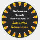 A circle of candy corn against deep black gives an illusion of teeth in a gaping mouth. The sweets point to the message describing your delicious Halloween treats. Available with matching products.