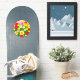 Sticker in a detailed illustration of brightly coloured wildflowes, in yellow, red and pink , in a green field