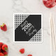 Bright modern white and black circular style birthday party or dinner paper napkins. Personalise with your name and birthday year and background colour of your choice. Currently reads happy 70th birthday Bailey. Designed by Sarah Trett.