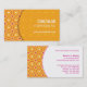 A grid of golden orange, pink and white concentric circles makes an arresting pattern on this business card that's sure to get attention. An orange yellow, slightly transparent circular shape holds the business name and main contact preference. The reverse reveals the pattern on the left to show off all the contact information against white on the right. A creative way to promote a marketing and communications business, a consultancy, interior designer or any creative occupation. Available in alternate colours with matching products.