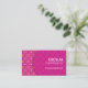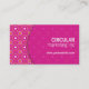 A grid of pink, orange and white concentric circles makes an arresting pattern on this business card that's sure to get attention. A bright pink, slightly transparent circular shape holds the business name and main contact preference. The reverse reveals the pattern on the left to show off all the contact information against white on the right. A creative way to promote a marketing and communications business, a consultancy, interior designer or any creative occupation. Available in alternate colours with matching products.