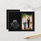 Announce your special day with this simple, modern black save the date postcard featuring a circle with white text and a photo in grey photo corners. No need to crop your photo, just slip it in behind the black background and you are good to go. The photo corners and black background are removable. Custom colour schemes are available upon request.