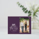 Announce your special day with this simple, modern purple save the date postcard featuring a circle with white text and a photo in grey photo corners. No need to crop your photo, just slip it in behind the purple background and you are good to go. The photo corners and purple background are removable. Custom colour schemes are available upon request.