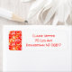 These return address labels have a design of circles decorated with lines and circles made of repeating dots in red and orange.