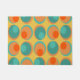 This cloth placemat has a retro design of concentric circles in 1970s colours in orange and turquoise.