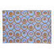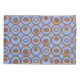 This pillowcase has a geometric design of circles in rows with circles or ovals inside in brown on a field of blue.