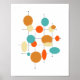 Add a pop of bold colour and style to your wall with this funky retro mid century modern print. Featuring circles, ovals, and lines in two shades of orange, turquoise blue, cream, and black, this print is sure to put a smile on your face.